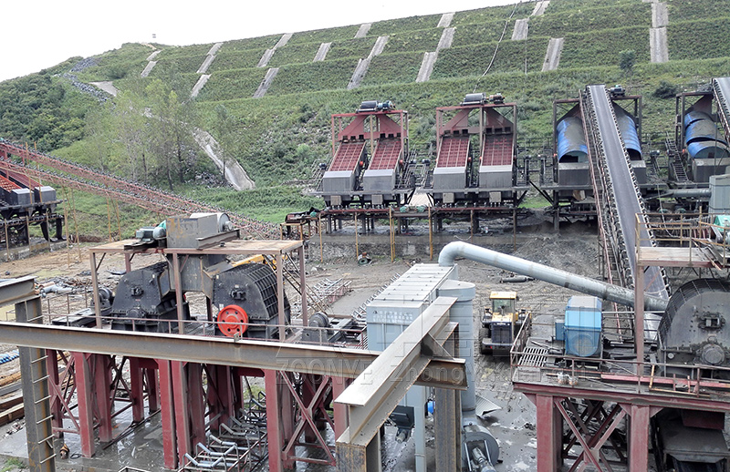 主要裝置有:給料機,顎破,皮帶機,反擊破,振動篩,返料篩,發電機等。